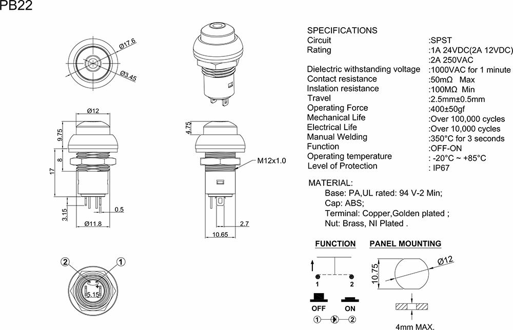 产品型号:PB22-A-4R-O-N