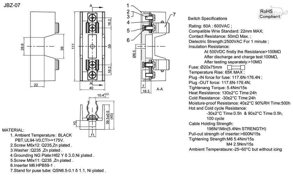 Rating: 60A:600VAC;